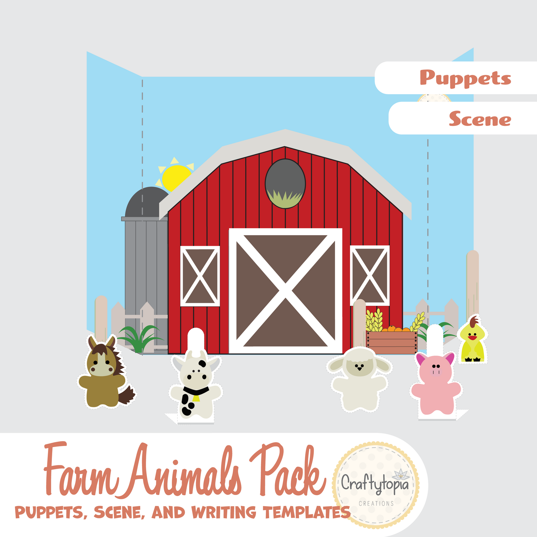 Farm Barn Scene and Puppets with WRITING Activities include: