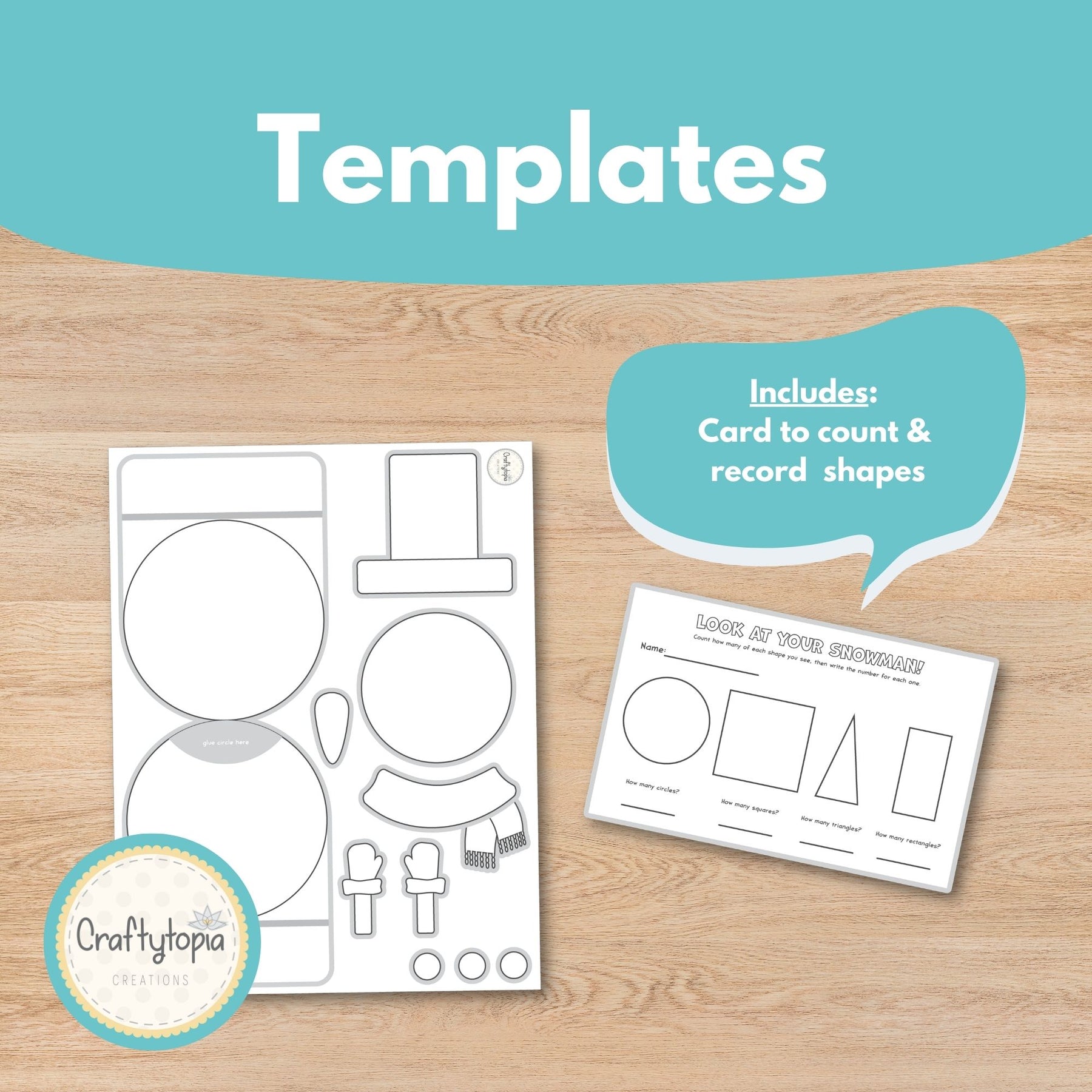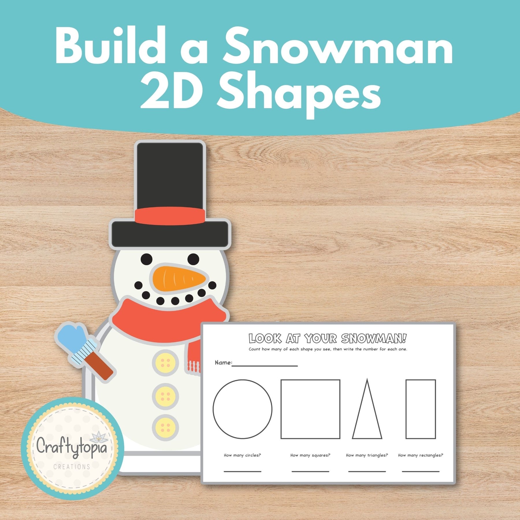 2D Shapes Snowman Craft includes: