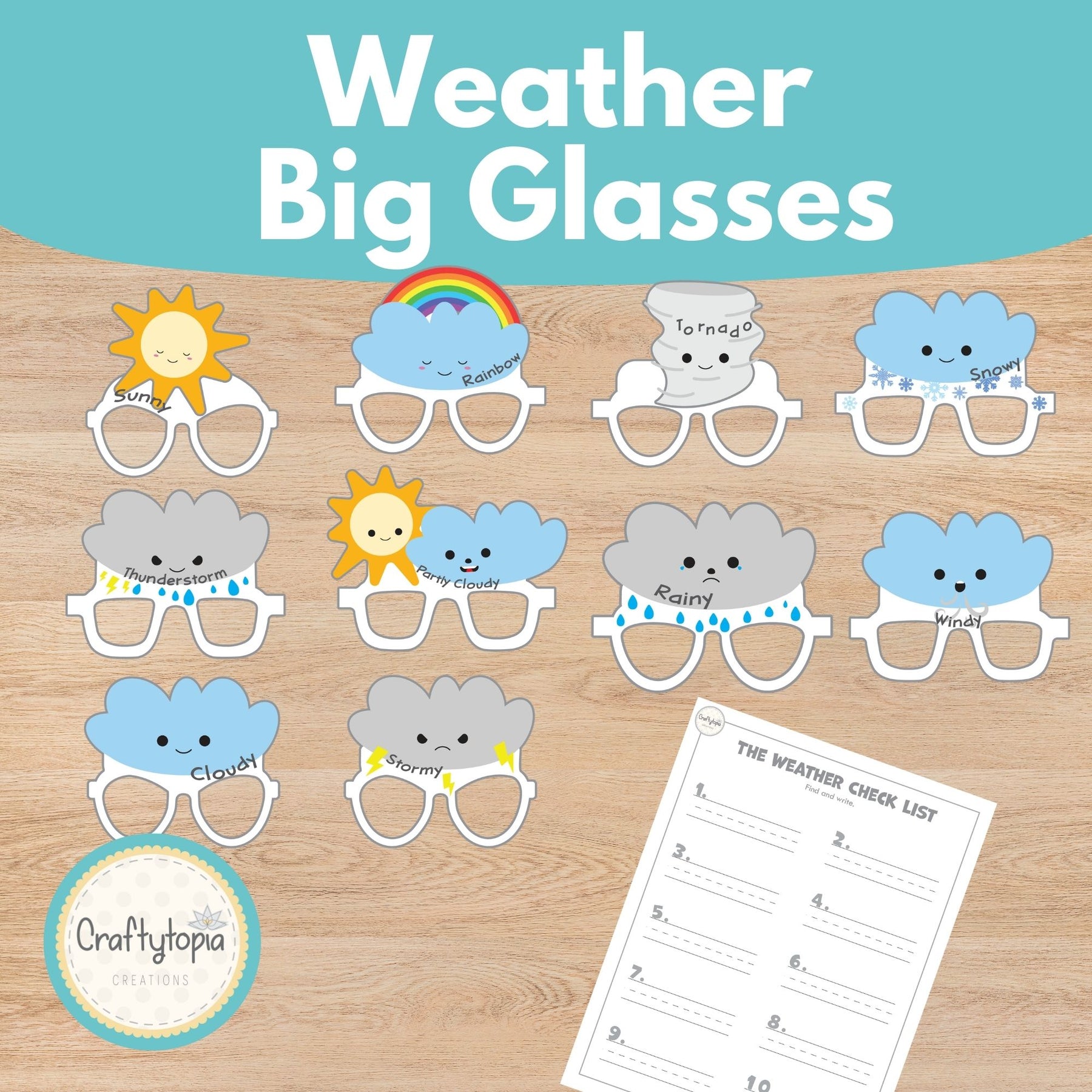 The instant download includes instructions and the pieces you'll need to make this Big Weather Glasses and Scavenger Hunt! Get ready for creative fun with just a few basic supplies from home or school.