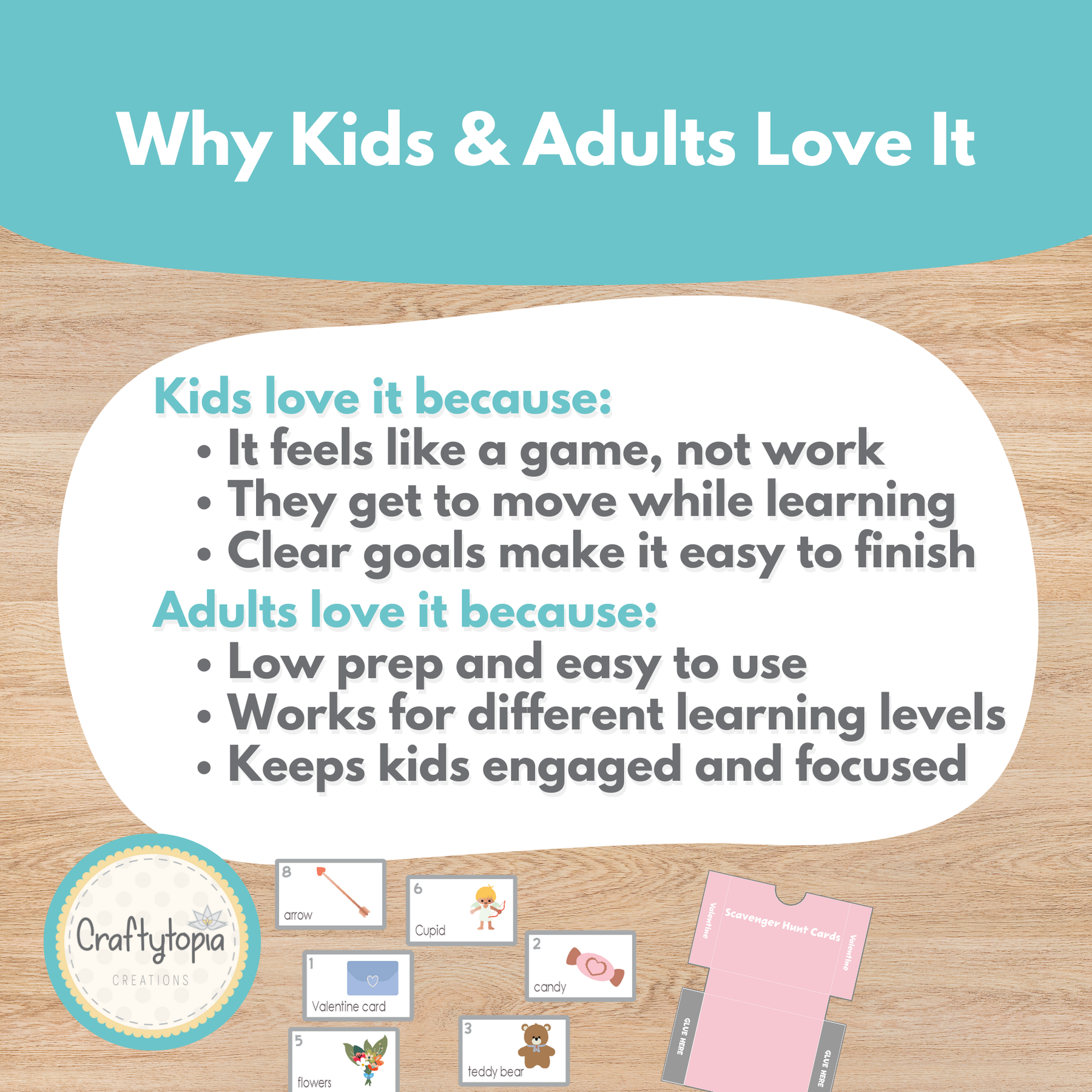 Designed to be low-prep and easy to use, this scavenger hunt is perfect for classroom centers, brain breaks, early finishers, or Valentine’s Day rotations. Students search for vocabulary cards, read each word aloud, and record their answers using a checklist —making it a flexible activity that works well for a variety of learning levels.