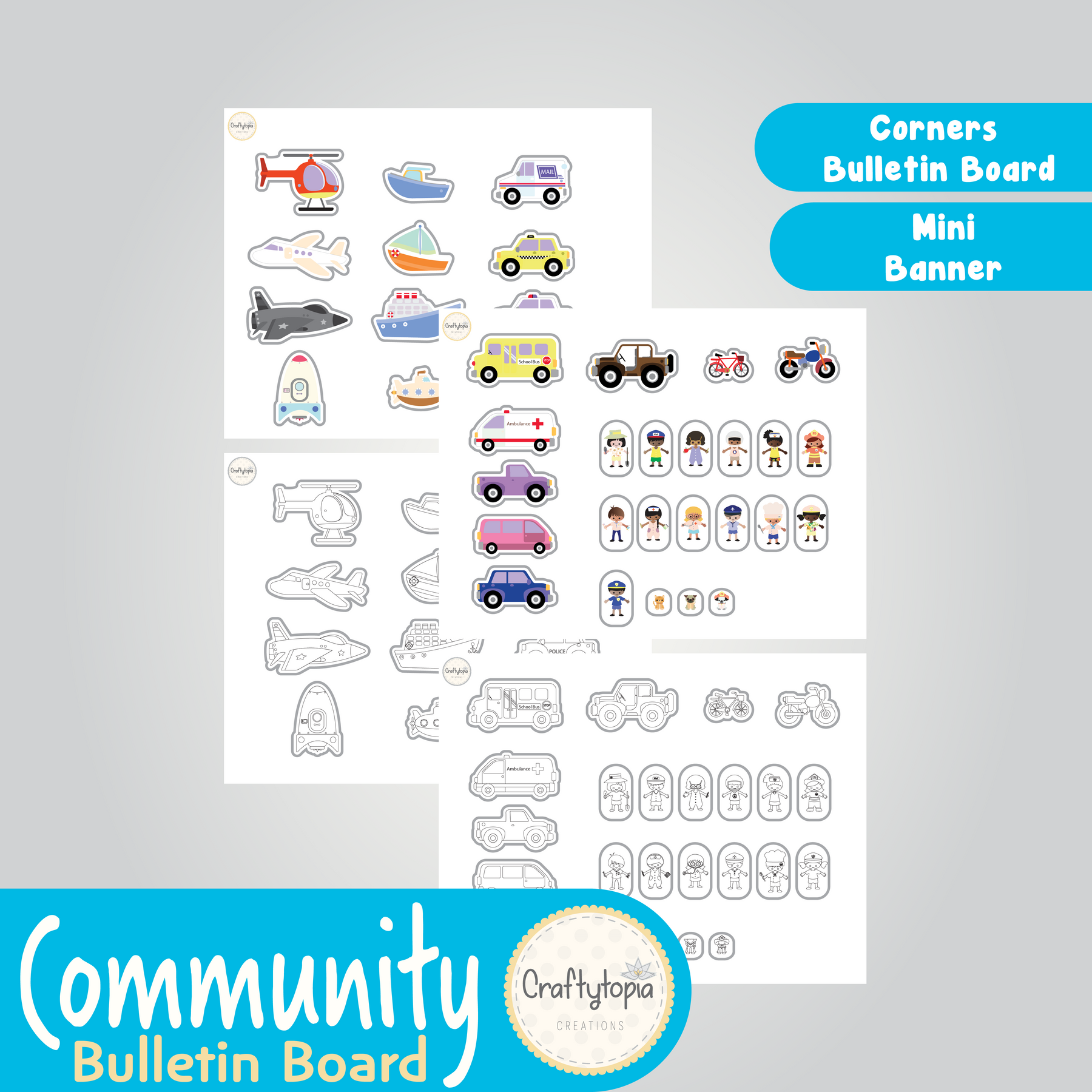 Make your classroom buzz with excitement as students explore the important roles of community helpers and the different ways they travel—by land, air, and water! This vibrant bulletin board set features colorful characters, transportation types, and an eye-catching banner that turns any space into an engaging educational display.